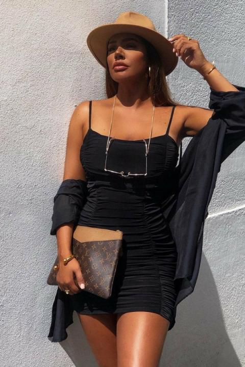 Rebellious Fashion Bodycon Dresses | WOMENS Black Slinky Ruched Tie Strap Bodycon Dress – Caressa