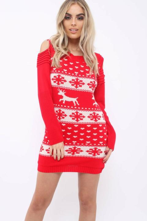 Rebellious Fashion Jumper Dresses | WOMENS Red Christmas Print Jumper Dress – Kleo