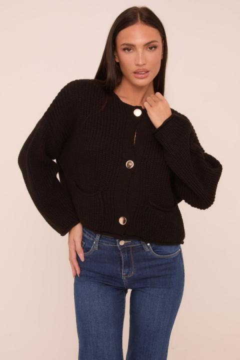 Rebellious Fashion Cardigans | WOMENS Black Knit Round Neck Long Sleeves Cardigan – Edna