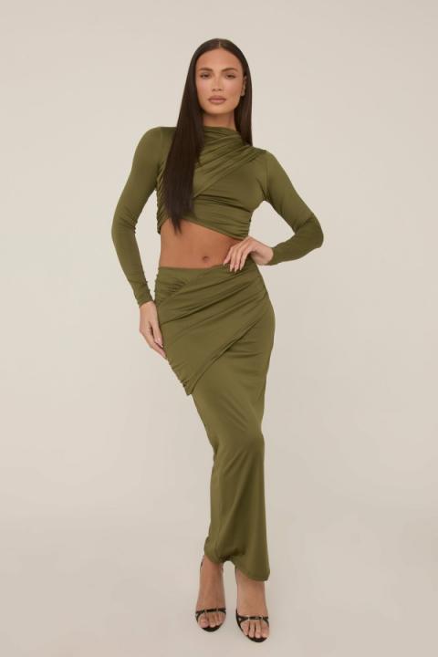 Khaki Wrap Detail Maxi Skirt Co-ord Get ready for the party season babe with this Khaki Wrap Detail Maxi Skirt Co-ord. Featuring a slinky fabric, wrap detail, cropped top and a matching maxi skirt. Embrace the season’s trends with our thoughtfully curated pieces that are perfect for mixing and matching, allowing you to create countless outfit combinations. Wear with heels and accessories of choice to complete your look KhakiSlinky FabricWarp DetailCropped TopMaxi LengthLong SleevesCo-ordsModel wears size 8