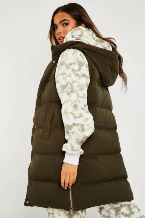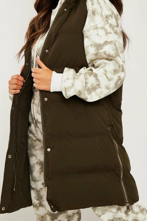 Khaki Side Zip Long Sleeveless Puffer Coat – Priyah…