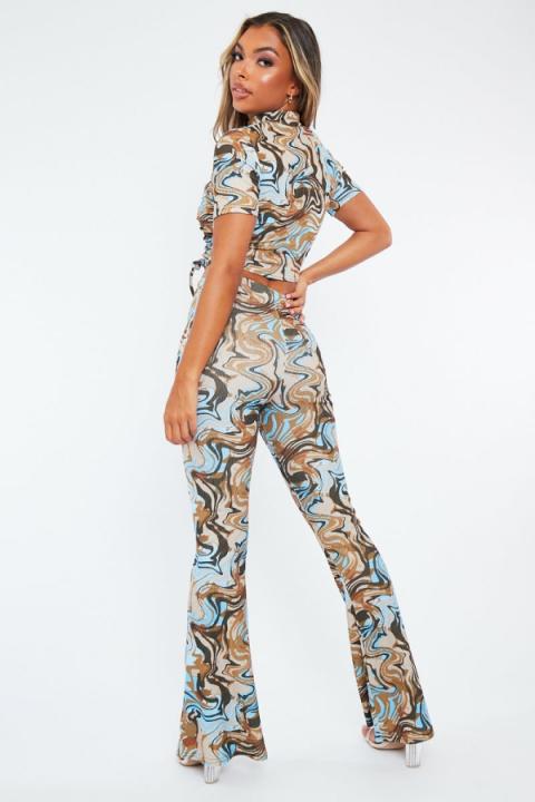 Blue Marble Print Ribbed SetGive your look a serious update our trending Mansi Blue Marble Print Crop Top & Side Ruched Trouser Set. Featuring ribbed marble print material with a high neck design and ruched front detailing. Style with strappy heels and big hoops. Set Marble Print Ribbed Ruched Crop Top Flared Trousers Co-Ord Model Wears Size 8