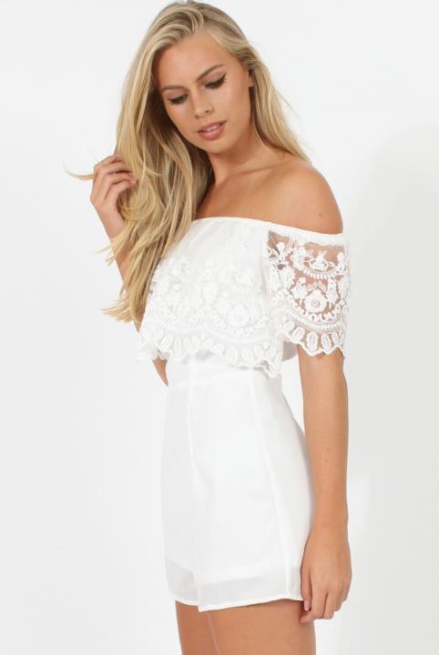Rebellious Fashion Playsuits | WOMENS White Lace Bardot Playsuit – Clover